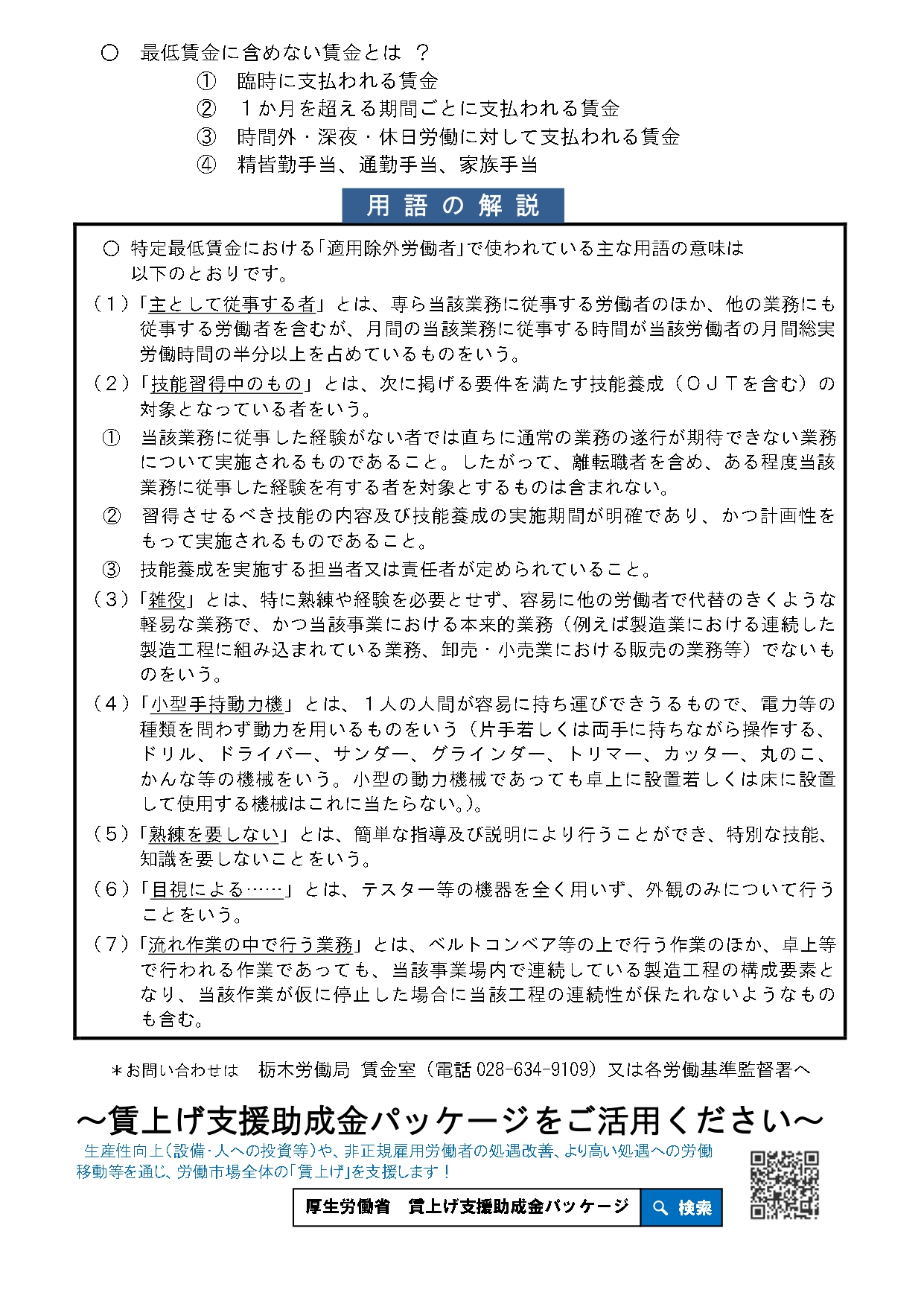 詳細は、栃木労働局労働基準部賃金室(028-634-9109)または最寄りの労働基準監督署にお問合せください。