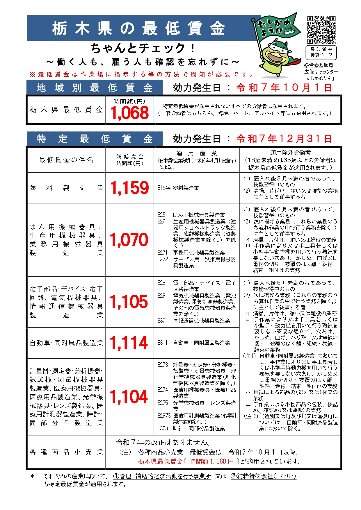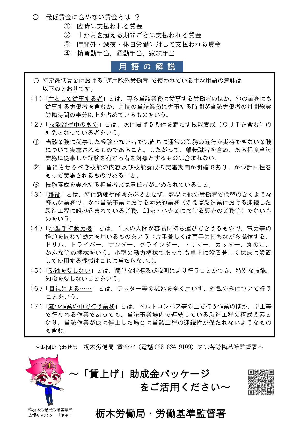 詳細は、栃木労働局労働基準部賃金室(028-634-9109)または最寄りの労働基準監督署にお問合せください。